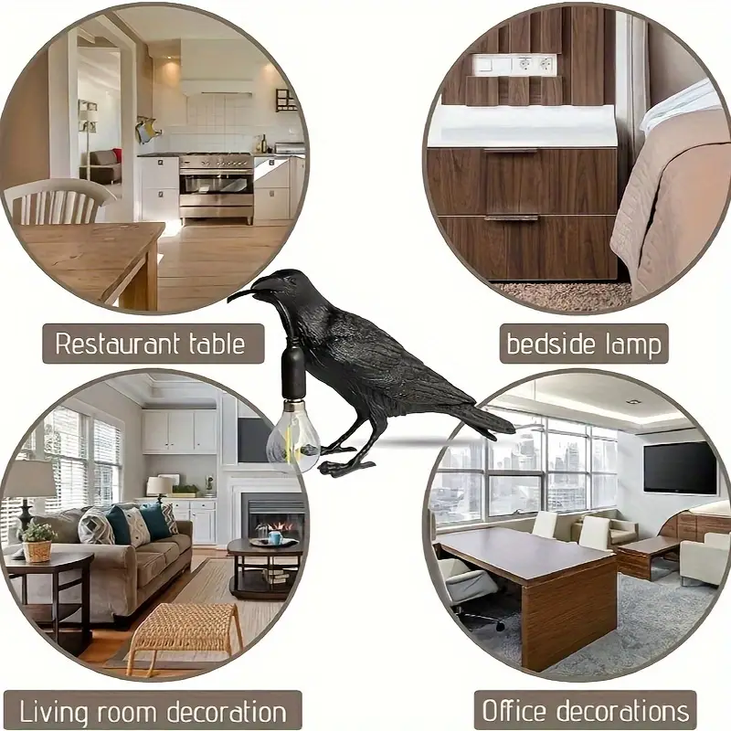 Designed with practicality in mind, the lamp features a button switch for easy control and operates on a plug-powered system compatible with 110V outlets. The US plug ensures compatibility, and the included bulb saves you the hassle of finding the right light source. Whether used as a desk lamp, bedside accessory, or centerpiece for your living room, the Crow Lamp Raven Light’s animal-inspired theme and modern design make it a conversation starter. Its blend of functionality and aesthetic appeal makes it an ideal choice for anyone seeking a statement piece that’s as practical as it is stylish.